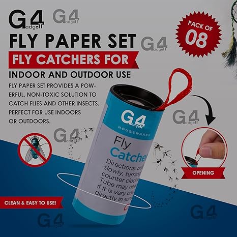 G4GADGET 8-Pack Fly Paper Set – Non-Toxic Sticky Fly Traps for Indoor & Outdoor, Ideal for Fruit Flies and Insects